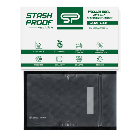 7" x 11" Vacuum Seal Zipper Storage Bags (Black and Clear)